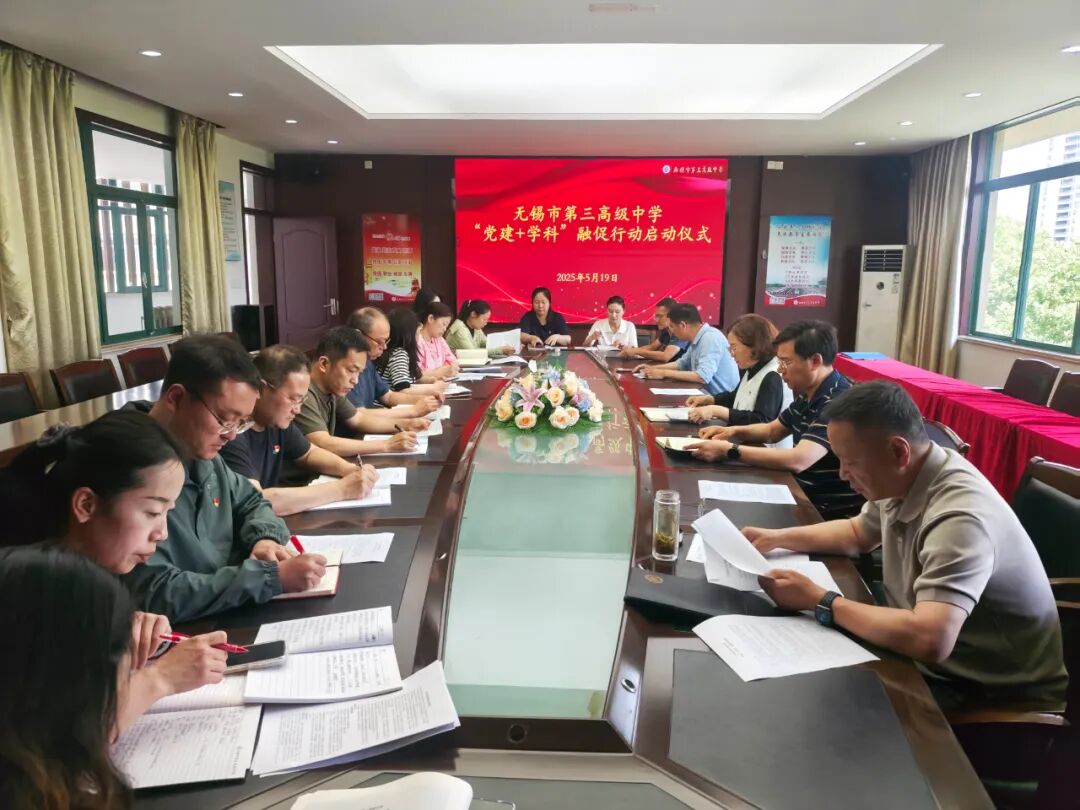 —“党建+学科”融促行动启动仪式— 为精准落实市委教育工委、市教育局党建引领教育高质量发展“双融双促”重点项目推进要求,推动党建与业务深度融合,发挥党组织战斗堡垒和党员先锋模范作用,5月19日,无锡市第三高级中学举行“党建+学科”融促行动启动仪式,正式拉开学校党建工作与学科建设深度融合的帷幕。学校党委班子成员、各党支部书记及学科组长参加了本次仪式。01高位统筹,突出机制牵引会议现场发布了《无锡市第三高级中学 “党建 + 学科” 融促行动方案》,校党委书记刘丽平对“党委主责、支部主抓、党员主体”的工作机制进行了重点解读,并对支部和学科组明确融促方向和任务。刘书记强调,各党支部和学科组要聚焦“优质学科组”建设重点,将党建工作与学科组建设紧密结合,要在学校课程教学改革的最前沿“看见组织看见人”,以实际行动推动党建工作与学科建设同频共振,将组织优势与学科优势有机结合并发挥最大效应。 支部任务:结合支部内学科组成,与学科组紧密配合,组建课程教学改革党员先锋队,针对各学科在优质学科组创建过程中存在的特色亮点、突破点、创新点确定融促方向,组织学科党员教师积极参加优质学科组建设各项活动,做强特色亮点,做实建设成效。 学科组任务:梳理本学科在优质学科组建设过程中的特色亮点、突破点和创新点,与支部配合确定融促方向,积极发挥本学科课程教学改革实践党员先锋队的模范带头作用,点上突破,面上带动,进而整体推动本学科优质学科组建设进程。02聚焦品牌,突出先锋引领校长毛锡荣为文科、理科和综合党支部“课程教学改革党员先锋队” 授牌,并激励党员教师积极探索创新,在课程改革中发挥先锋模范作用,为学校课程体系建设注入新活力。先锋队的成立,标志着“党建 + 学科”模式将深入学校课程教学改革领域,为全面提升学校教育教学质量提供有力的组织和人才保障。03紧扣实际,突出多向共融语文学科组组长杨晔老师和历史学科组组长郑彩君老师以学科组融促方向为主题进行现场发言。语文组将重点聚焦教学研讨,特别是跨学科主题教学,积极探索语文学科与其他学科的融合创新模式,提升语文教学的综合效能。历史组则将重点放在课程开发上,结合党史校史,打造具有学校特色的校本课程,将红色文化与革命传统融入历史教学,实现课程思政与学科教学的融合。04统一部署,突出同向共进教务处副主任吉缪明对“党建+学科”融促行动的具体任务举措进行了统一布置,并就下一阶段教学研讨、课程开发、项目实施的重点环节进行了细致解读,为“党建 + 学科” 融促行动扎实推进取得实效奠定了基础。 一直以来,三高中立足学校党建工作实际,将支部建在学科上,着力推动“党建”“育人”双轮驱动,在教育教学、教育科研、服务为民等方面,充分发挥党员教师双重身份的引领示范作用。党员教师带头上示范课党员教师带头做教研党员教师带头服务育人通过党建工作与学科建设的深度融合与协同共进,三高中将不断激发教育发展的内生动力,持续提升教育教学质量,探索出一条具有示范引领作用的创新路径,为全市教育事业的高质量发展贡献智慧与力量。