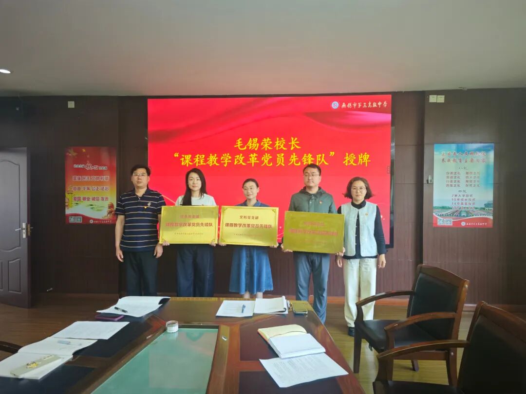 校长毛锡荣为文科、理科和综合党支部“课程教学改革党员先锋队” 授牌,并激励党员教师积极探索创新,在课程改革中发挥先锋模范作用,为学校课程体系建设注入新活力。先锋队的成立,标志着“党建 + 学科”模式将深入学校课程教学改革领域,为全面提升学校教育教学质量提供有力的组织和人才保障。